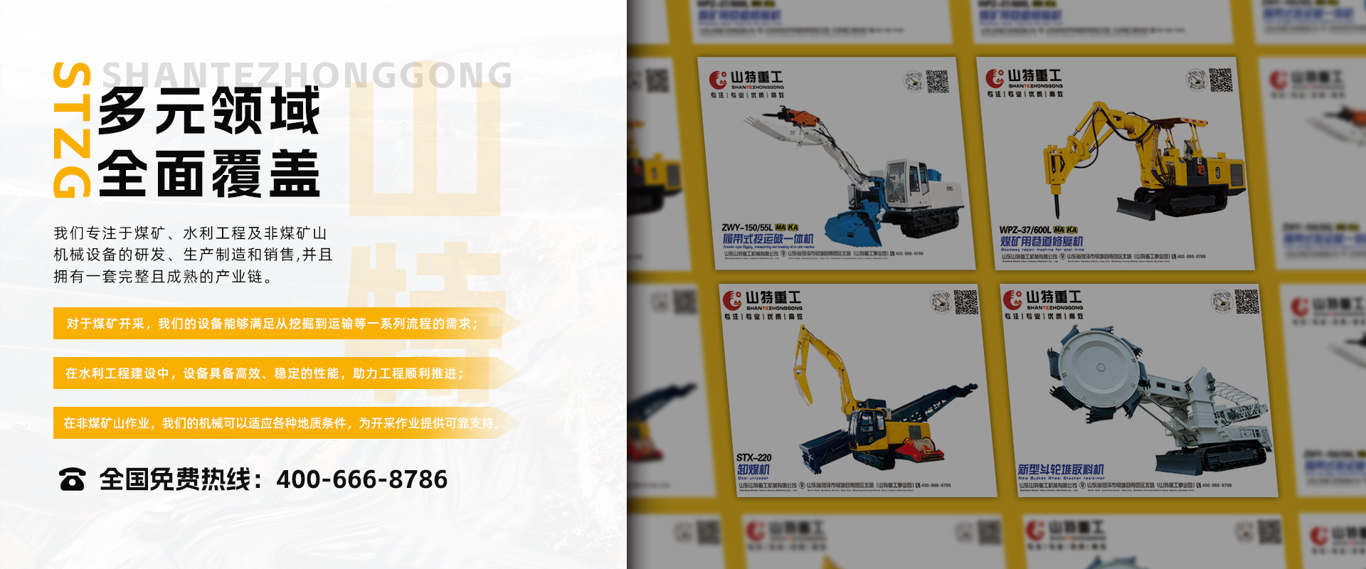 山東山特重工機(jī)械有限公司成立于2009年2月,是一家煤礦、水利工程及非煤礦山的機(jī)械設(shè)備研發(fā)、生產(chǎn)制造和銷(xiāo)售的自然人獨(dú)資企業(yè)。占地面積150余畝,產(chǎn)品主要有斗輪堆取料機(jī),扒渣機(jī),銑挖機(jī),巷道修復(fù)機(jī),電動(dòng)挖掘機(jī),卸煤機(jī),挖破運(yùn)一體裝載機(jī),翹毛臺(tái)車(chē)等,八大系列20余個(gè)品種,主要用于煤礦及非煤礦山、水利工程、鐵路修建及隧道、涵洞的開(kāi)挖、火車(chē)港口貨物的裝卸、轉(zhuǎn)運(yùn)、堆碼等領(lǐng)域。國(guó)內(nèi)市場(chǎng)覆蓋28個(gè)省市自治區(qū)。